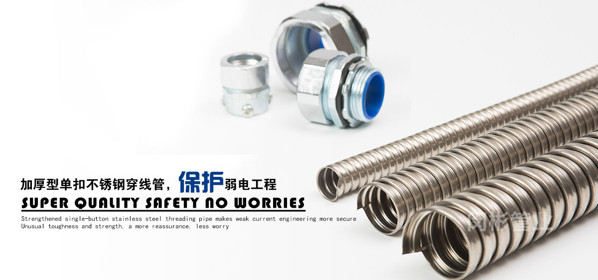 除此之外,公司還致力于金屬軟管接頭,普利卡管,普利卡接頭,不銹鋼穿線管的銷售。公司本著品種多、質量優(yōu)、服務好的宗旨,不斷開發(fā)、創(chuàng)新產品,以滿足日益發(fā)展的市場需要。產品主要包括:金屬軟管接頭 ,橋架接頭,塑料軟管接頭,AD接頭,不銹鋼接頭,普利卡接頭,包塑金屬軟管,不銹鋼軟管,不銹鋼編織軟管,普利卡軟管,尼龍軟管,塑料波紋管,尼龍拖鏈等機床配件。產品廣泛應用于建筑、機床、鐵路、車輛、化工、汽車、監(jiān)控、建筑裝修、建筑裝飾、建材、裝修裝飾等行業(yè)。上海閔彬管業(yè)有限公司高質量包塑管在實際使用中多家工程單位的認可、使用與推廣。